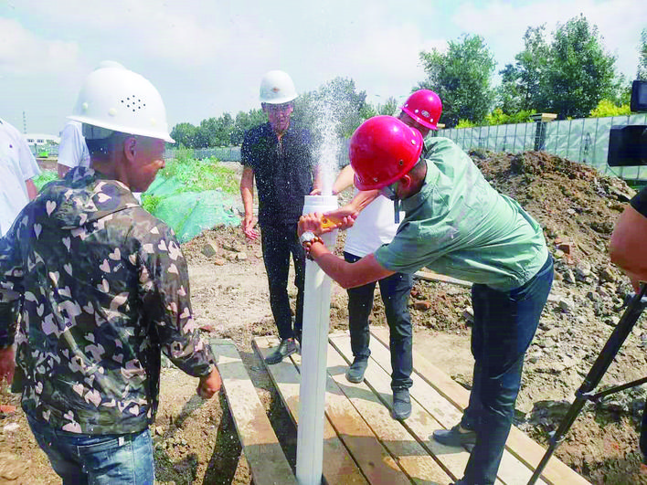 經(jīng)開區(qū)觀天下二期項目用水工程從報裝到通水僅用了40分鐘。圖為工作人員打開水管閥門。“驚喜!”20日, 上午,在經(jīng)開區(qū)觀天下二期項目的工地.上,吉林富騰集團房地產(chǎn)開發(fā)有限責(zé)任公司總經(jīng)理助理陳中秋看著水管里冒出的水流,高興得合不攏嘴。
